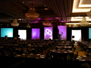 I love this job. Presentation Services has hired me to coordinate approximately 150 break-out rooms at the Wyndham Anatole. Even though I was given the wrong paperwork three different times and over a three day period, we still came off like clockwork and only had a couple of glitches that were serious enough to make us work up a sweat over. This was a very complex event with multiple factions within the client that we had to deal with each on a daily basis. When the main client left they signed a contract to come back and they requested that I come back and coordinate their break-outs again. It was exhausting, but exhilarating.